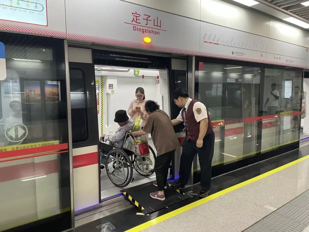 1号线定子山站与2号线南昌东站分别上演“轮椅接力”服务,为行动不便乘客铺就顺畅归途。10月8日,在定子山站,工作人员发现几位乘坐轮椅的乘客准备进站,便立即上前询问目的地,引导其乘坐垂直电梯,并同步与站台岗联动准备折叠踏板。列车到站后,工作人员熟练架设踏板,协助乘客安全上车,协调车厢乘客让出空间,提前通知目的地车站接应。