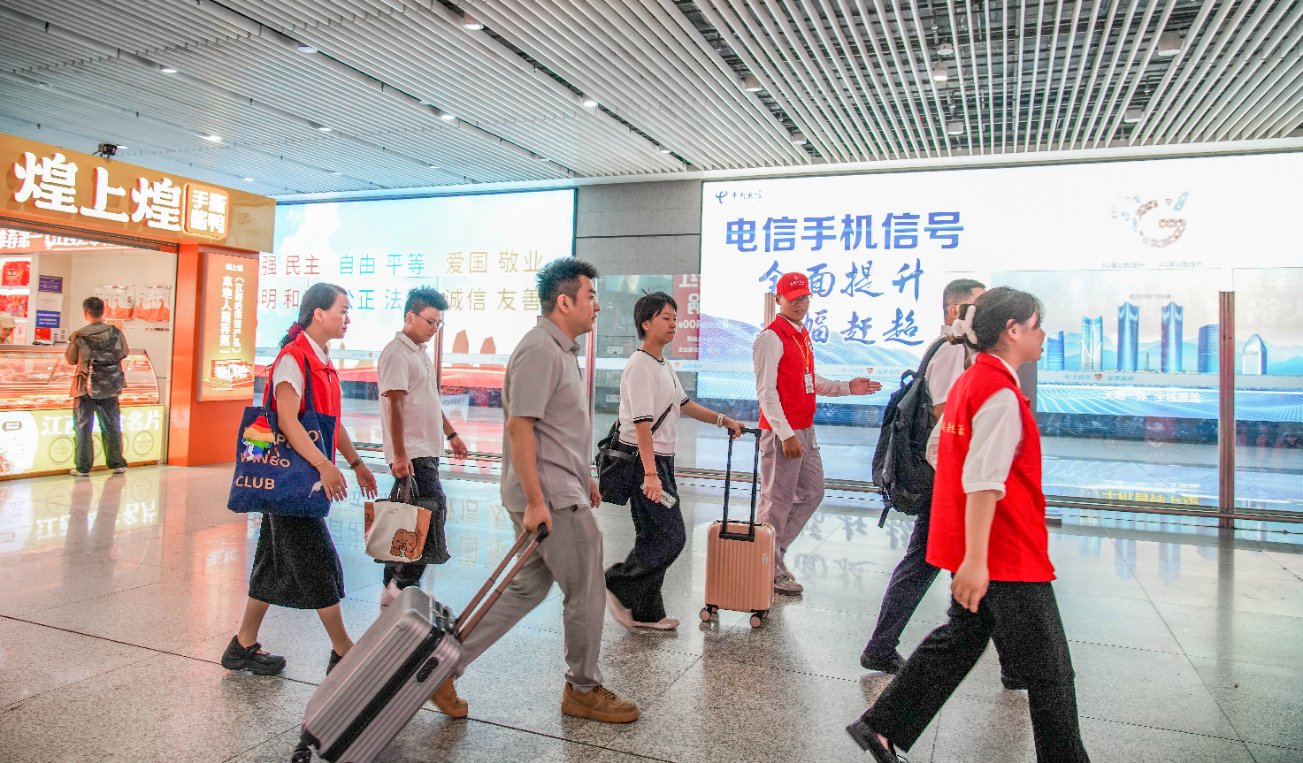 10 月 15 日,志愿者们整装出发,来到南昌西站、南昌火车站、昌北机场接站服务点,以热情洋溢的笑容、精神抖擞的状态和贴心的服务迎接八方来客。他们高效协助迎宾接站、办理入住、路线指引等工作,充分展现了南昌志愿者的专业素养与青春活力,收获了来宾的一致好评。从出行保障到驻地服务,志愿者们以暖心服务彰显好客南昌形象,圆满完成了志愿服务任务。
