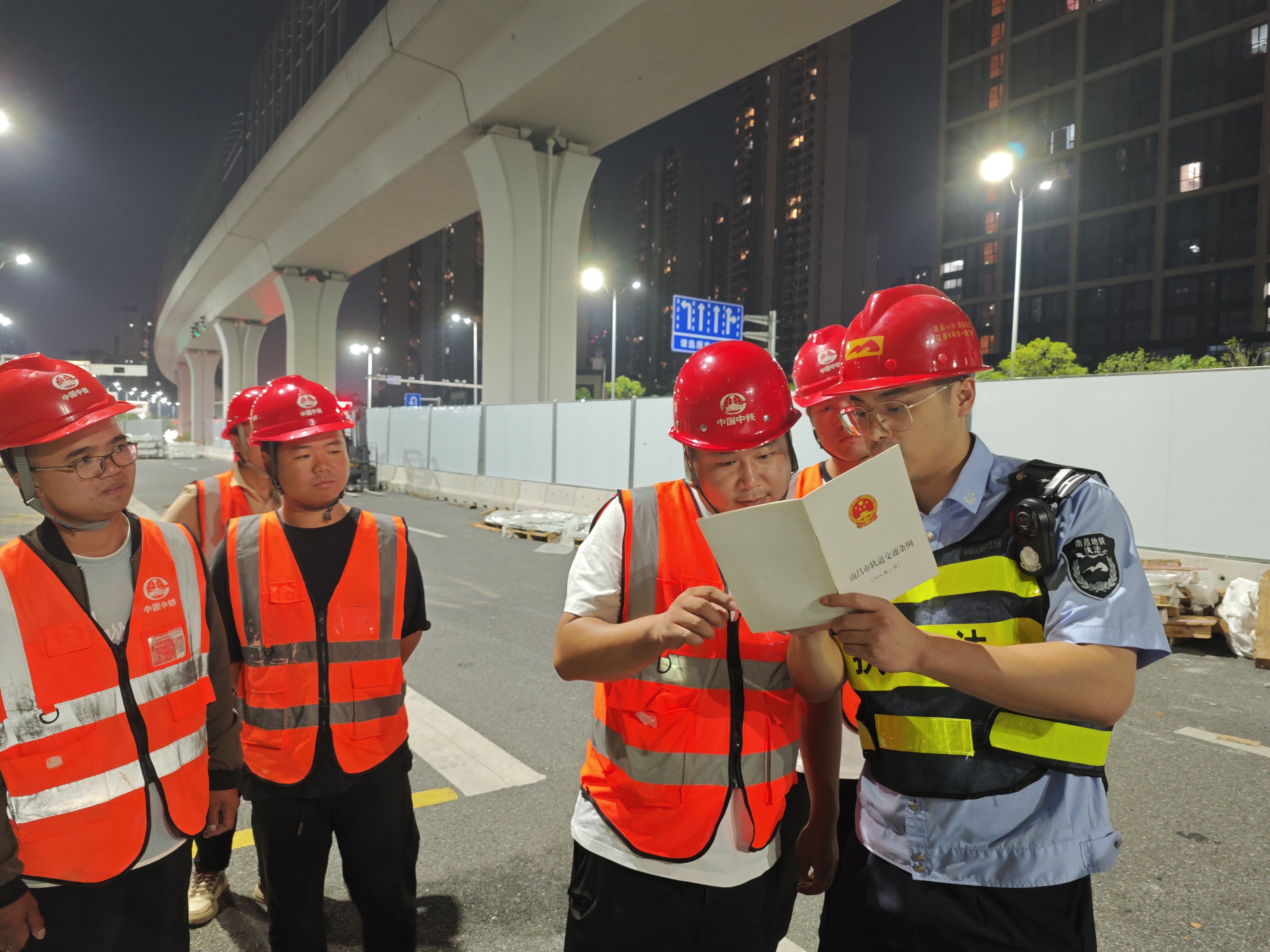 执法支队深化“早介入、走出去”工作理念,分级梳理宣讲重点,面向空置地块管理方、沿线社区、属地政府及重点拟建项目单位,开展“点对点”针对性走访。通过剖析夜间违规施工典型案例、解读《南昌市轨道交通条例》等法律法规,明确夜间施工备案流程、安全防护标准及违规责任,划定“红线”与“底线”,切实提升相关单位的地铁设施保护意识和协同配合能力。
